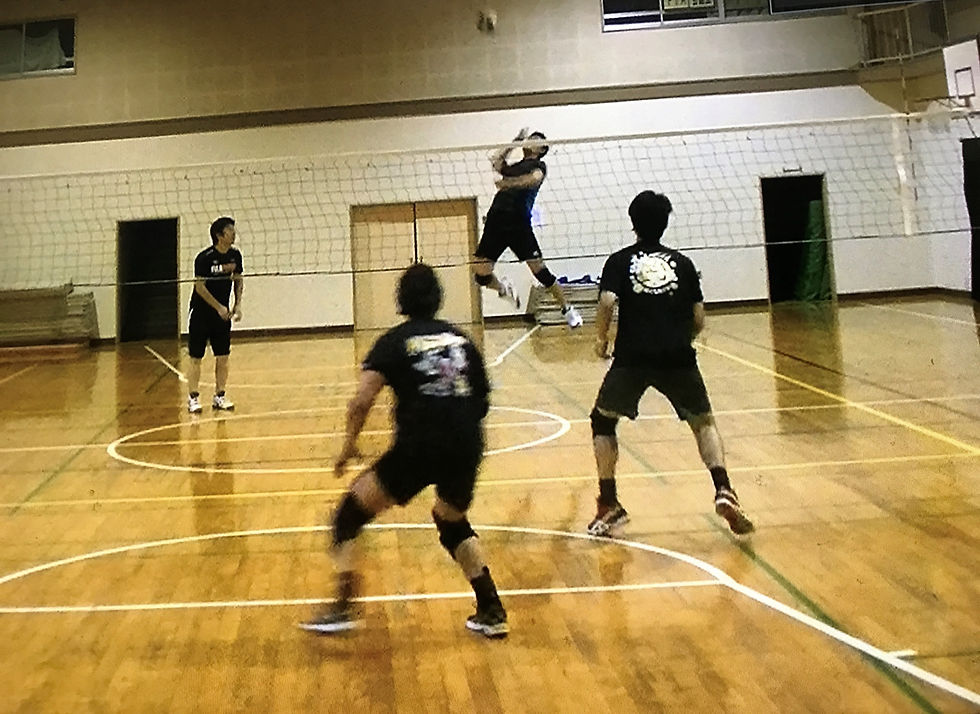 室内ビーチバレーの今回、普段あまり見ない組み合わせもありました。一例ですがこんな感じ。